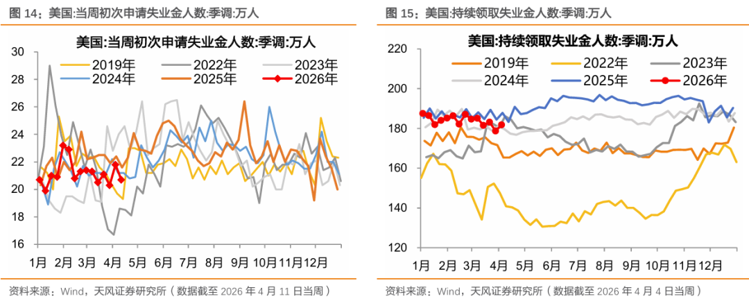初请失业金人数超预期下降。截至4月11日当周,美国初请失业金人数20.7万人,预估为21.3万人,前值为21.8万人;截至4月4日当周,美国续请失业金人数反弹至181.8万人。