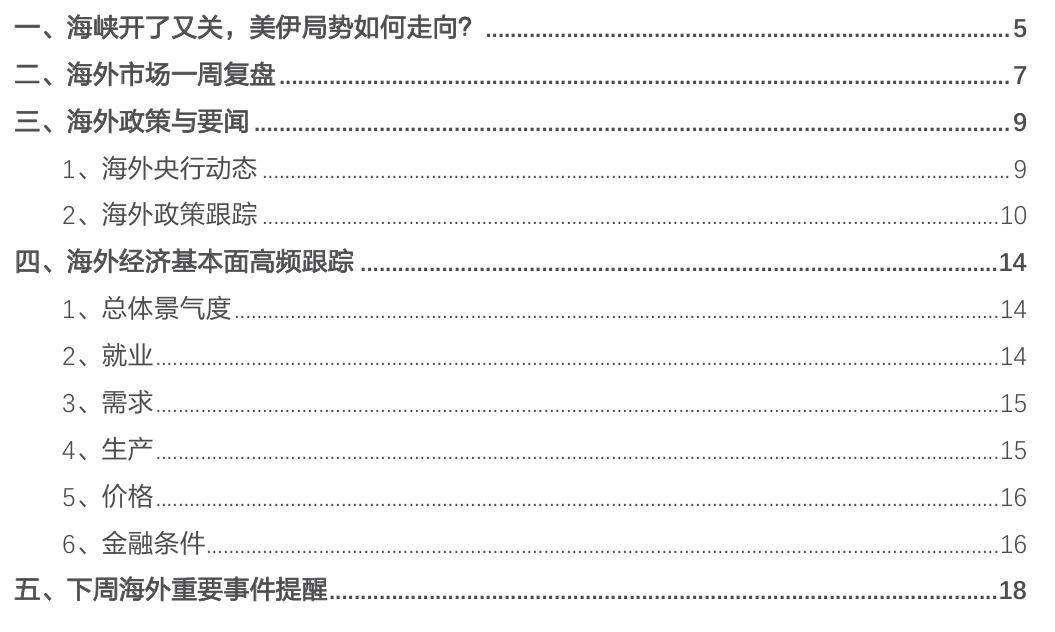 风险提示:海外经济基本面变化超预期,特朗普政府政策超预期,中东局势变化超预期。