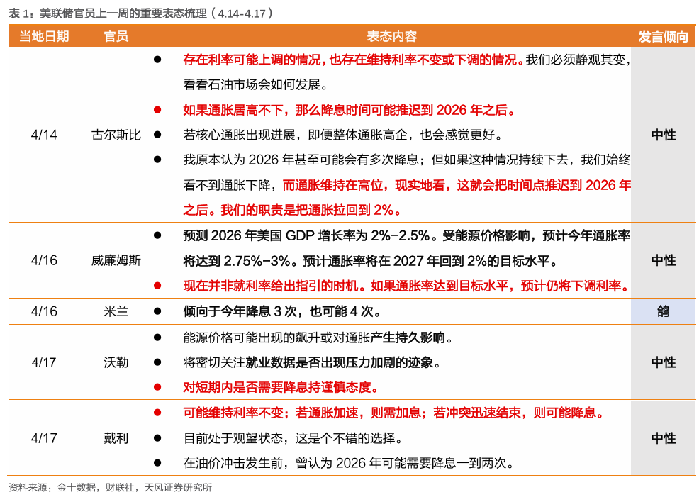 本周多位美联储官员发言,表达后续政策路径具备不确定性,当前难以给出明确指引。